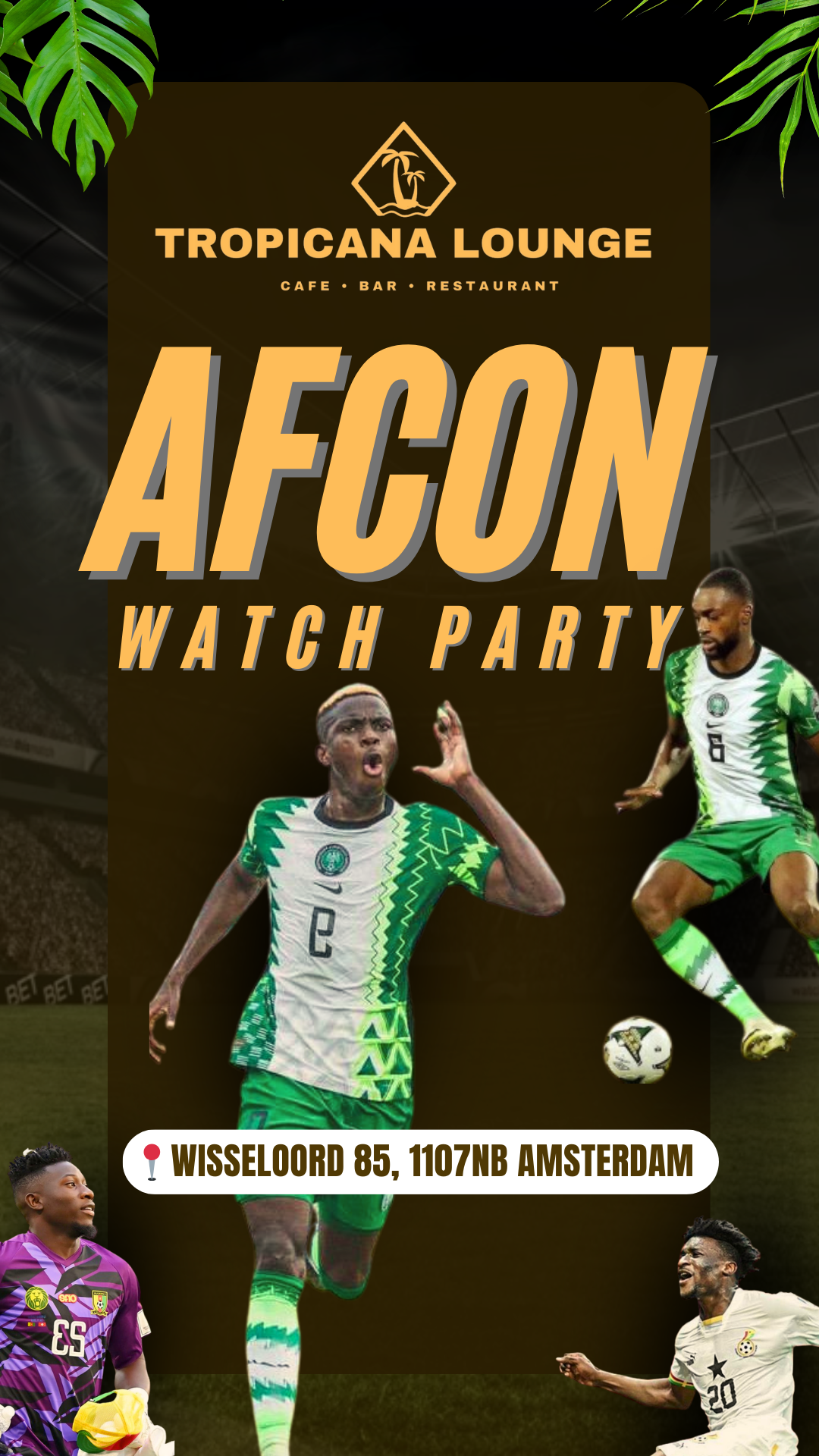 Experience AFCON the way it’s meant to be — big screens, African food, high energy & real match-night vibes.